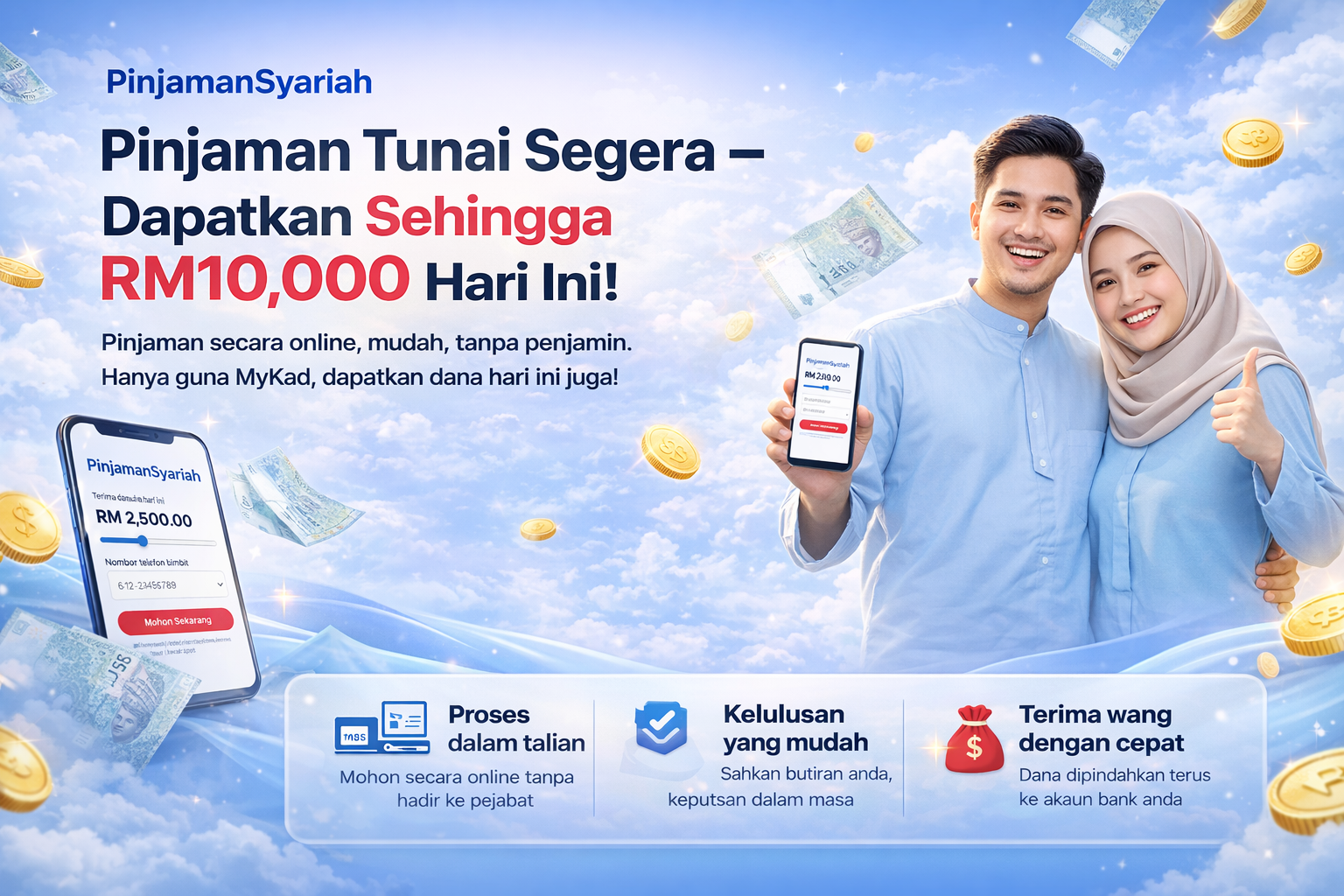 Pinjaman mudah, cepat, dan selamat — sokongan mesra serta proses 100% online.